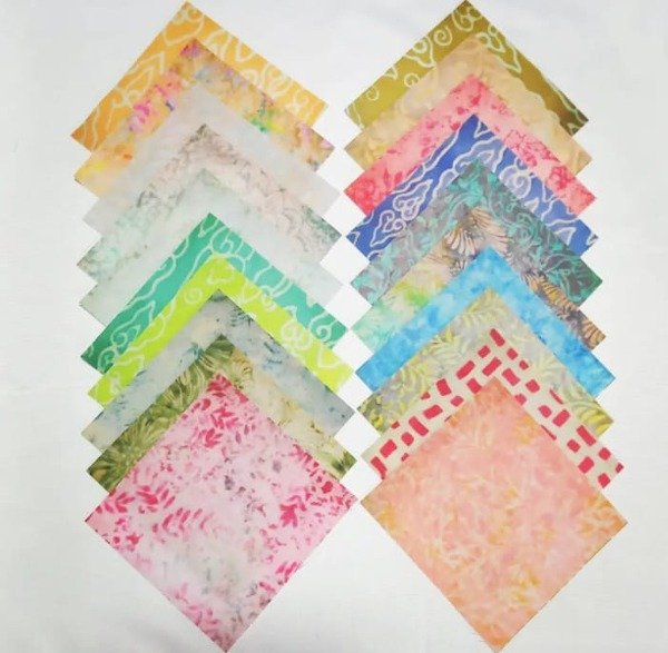 20 Retazos de tela de diseño temática tonos verano de 10cm x10cm, CON ENTRETELA FUSIONADA, la misma ya viene fusionada a la telas, listas para usar, ideal para proyectos que requieren tela con más cuerpo y a la vez flexibilidad.