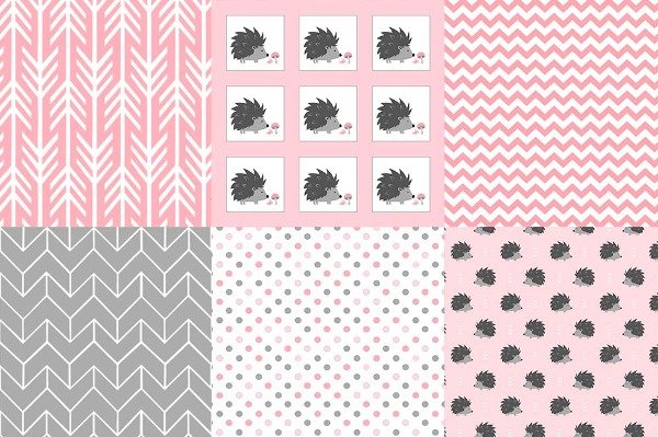 Pack ERIZOS TONOS ROSAS/ GRIS 6 Cortes 20x20 RETAZOS PATCHWORK + entretela