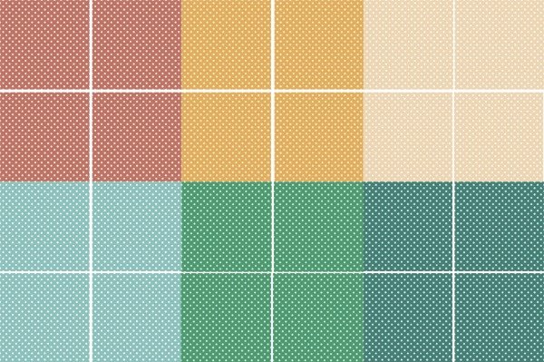 24 Retazos de tela de diseño temática lunares tonos VERDES-MARRON , LUNARES, de 10cm x10cm ( 4 cuadrados de cada color)