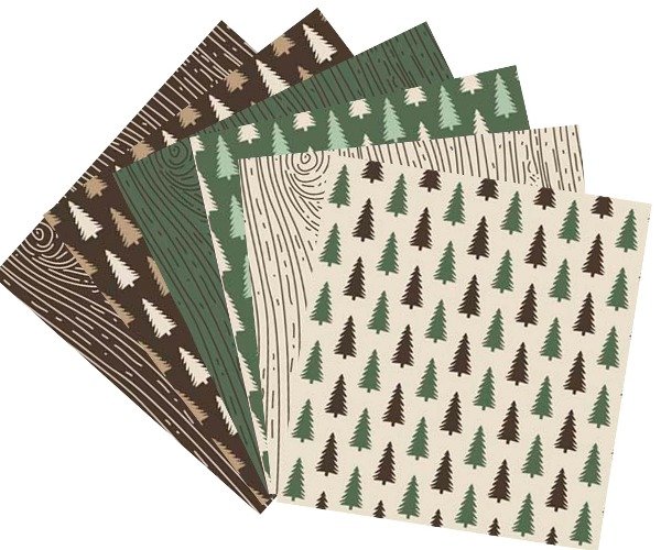 Pack PINOS BOSQUE 6 Cortes 20x20 RETAZOS PATCHWORK + entretela