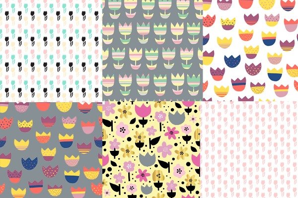 Pack Tela para Patchwork Retazos TULIPANES 6 Cortes 20x20 + entretela