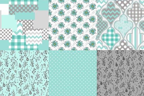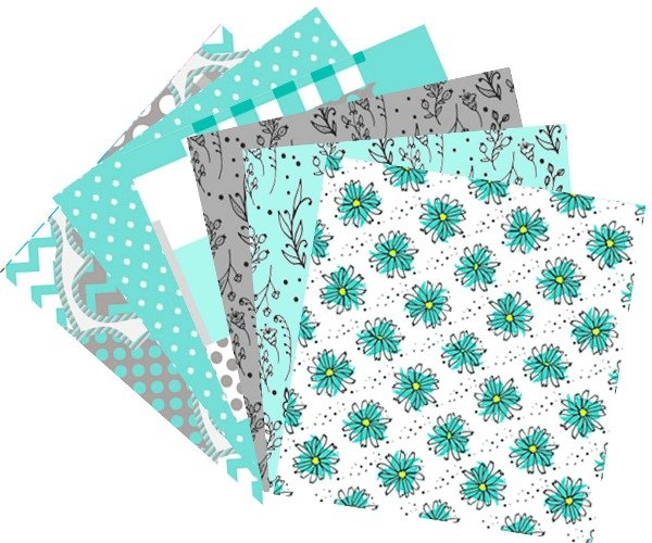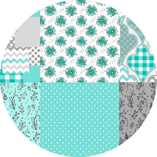 Pack Tela para Patchwork Retazos TONOS AQUA 6 Cortes 20x20 + entretela