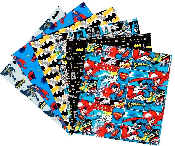 Pack Tela para Patchwork Retazos BATMAN + SUPERMAN 6 Cortes 20x20 + entretela